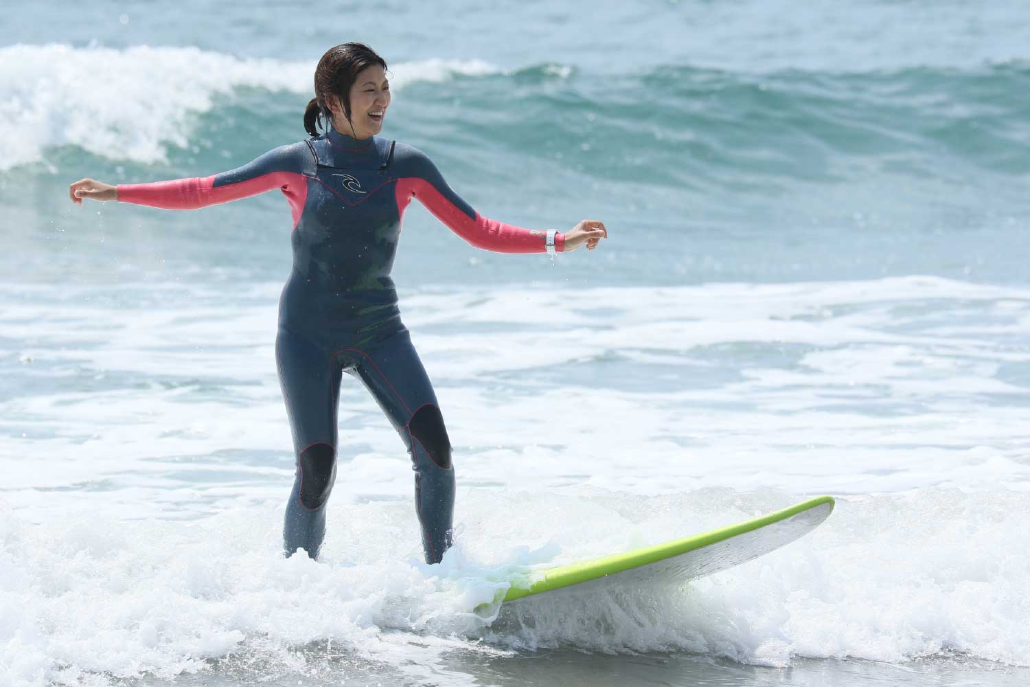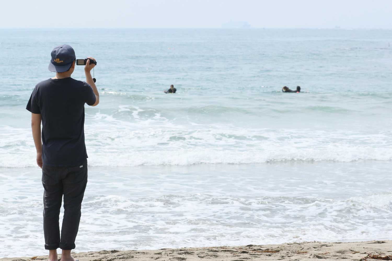 自分のラインディングを撮影し確認しながら練習しよう‼・陸上で基本姿勢の確認(パドリングの確認、スタンドアップの確認など) ・入水(ドルフィンスルーの練習→沖まで行きピークの見極め方→波待ち→方向転換など) |